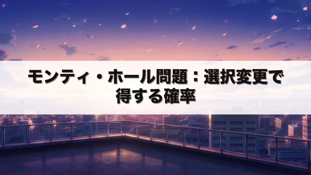 モンティ・ホール問題は、私たちの直感を裏切る有名な確率パズルです。 なぜ選択を変える方が有利なのか、その理由を深く掘り下げます。 この記事を読むことで、確率的思考の重要性がわかり、日常の意思決定に役立ちます。 モンティ・ホール問題とは テレ... -