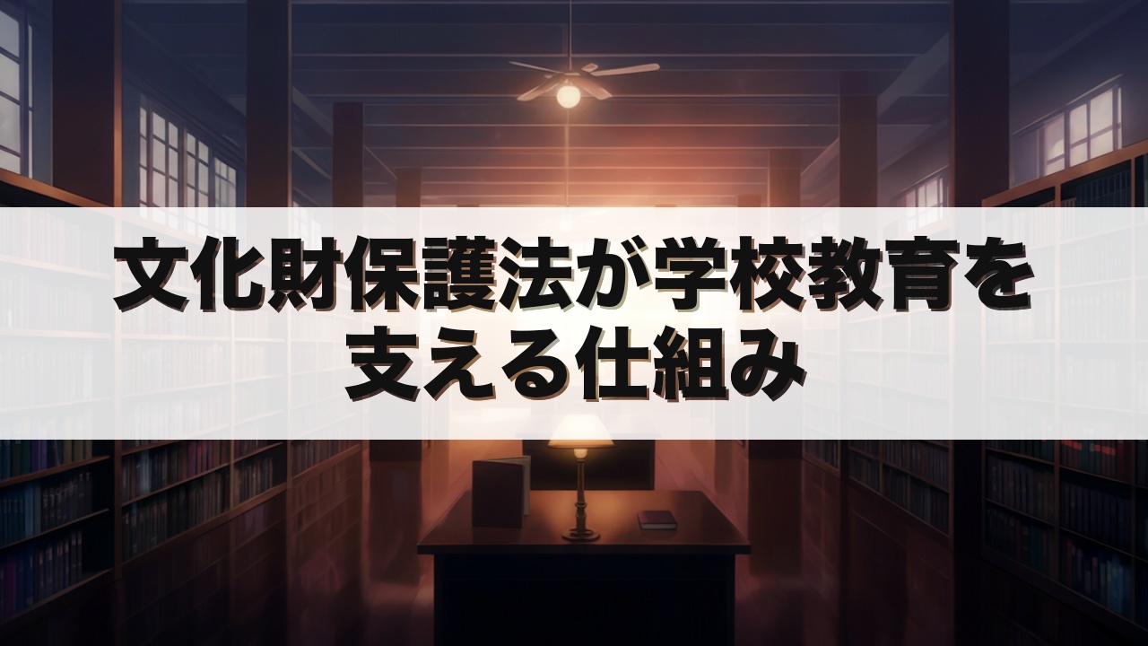 学校教育の観点では、社会科や国語の授業で取り扱う歴史的建造物や遺跡の多くが、この法律によって保護されています。