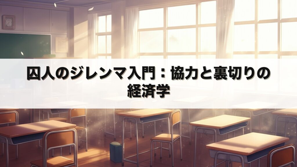 協力する方が賢いとわかっていても、なぜか裏切ってしまう。 そんな人間の行動原理を解き明かすのが「囚人のジレンマ」です。 この記事を読むことで、ゲーム理論の基本と現実の応用事例がわかり、人間関係やビジネス戦略の理解に役立ちます。 ゲーム理論と... -
