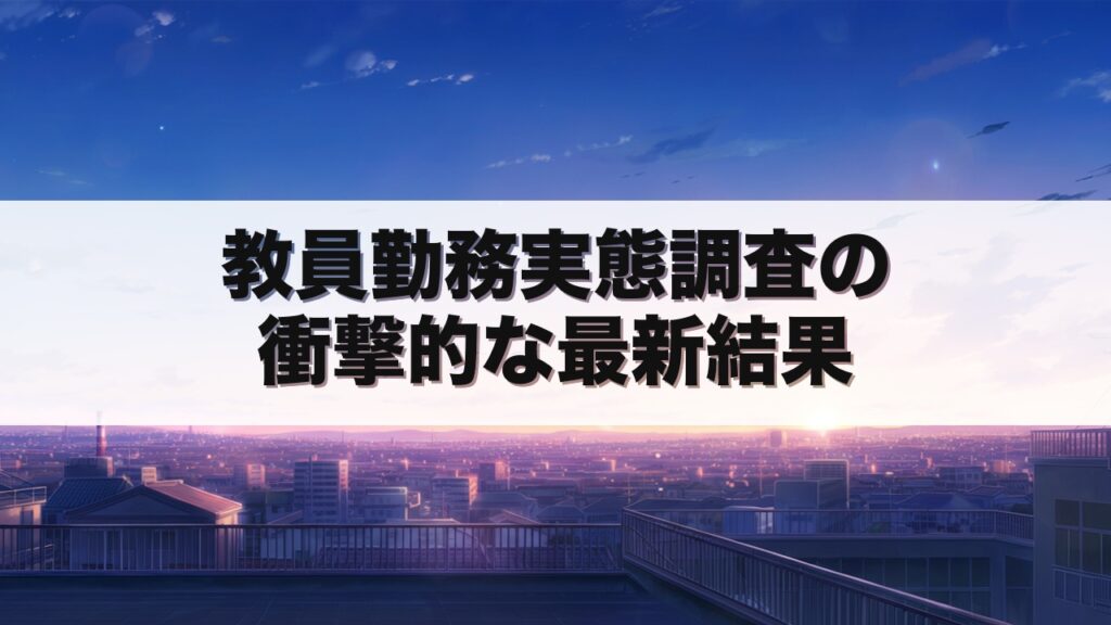 文部科学省が発表した最新の教員勤務実態調査では、小学校教員の週当たり平均勤務時間が過労死ラインを大幅に超える実態が明らかになりました。 この記事を読むことで、教員の働き方改革の現状と課題が理解でき、自身のキャリア判断に役立ちます。 最新調... -