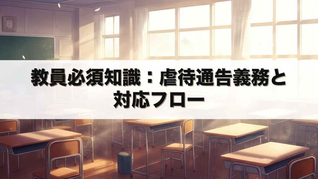 学校の教員は、児童虐待の疑いを発見したら法律で「通告義務」が課されています。 知らないまま対応を誤ると、法的責任を問われる可能性も。 この記事を読むことで、通告義務の法的根拠と具体的な対応フローがわかり、現場での判断が迷わなくなります。 児... -