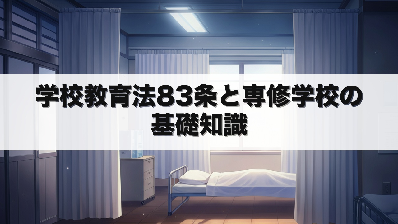 教員採用試験では、学校教育法第83条に関連して、専修学校の法的定義や課程区分がよく出題されます。