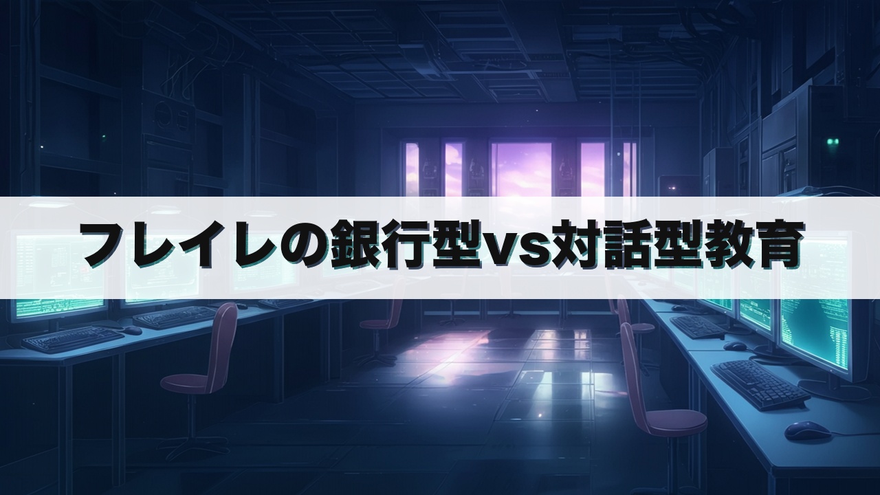 教室で生徒に説明する際は、『銀行のように一方的に知識を詰め込む銀行型教育』と『先生と生徒が対話しながら一緒に考える対話型教育』という対比を使うと、理解が深まります。