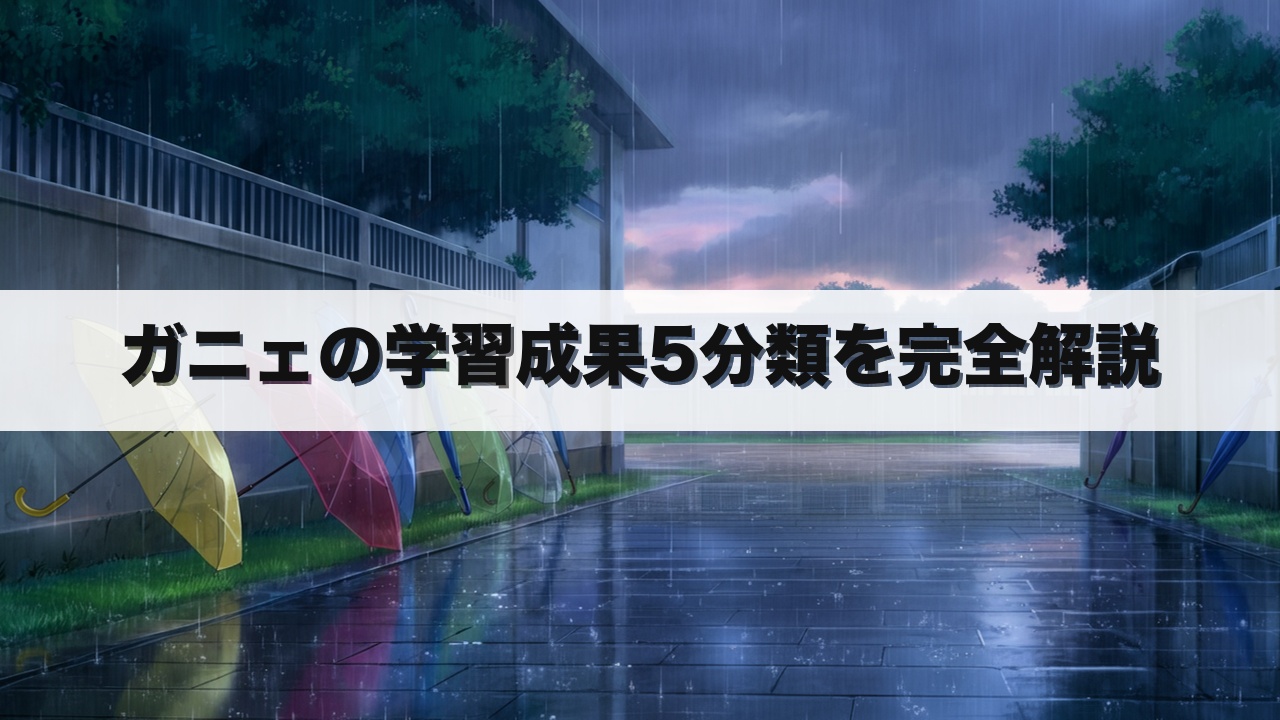 ガニェの5分類は、学習成果の種類を明確に区別することで、教育目標の設定や授業設計を科学的に行うための枠組みとなっています。