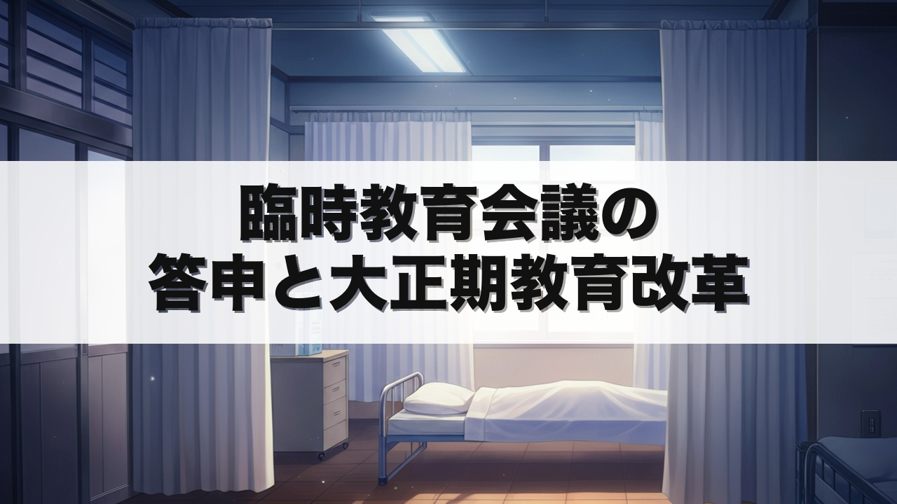教員採用試験では、臨時教育会議に関して、設置年度(大正8年)、総裁の人物名、答申の主要内容が頻出します。
