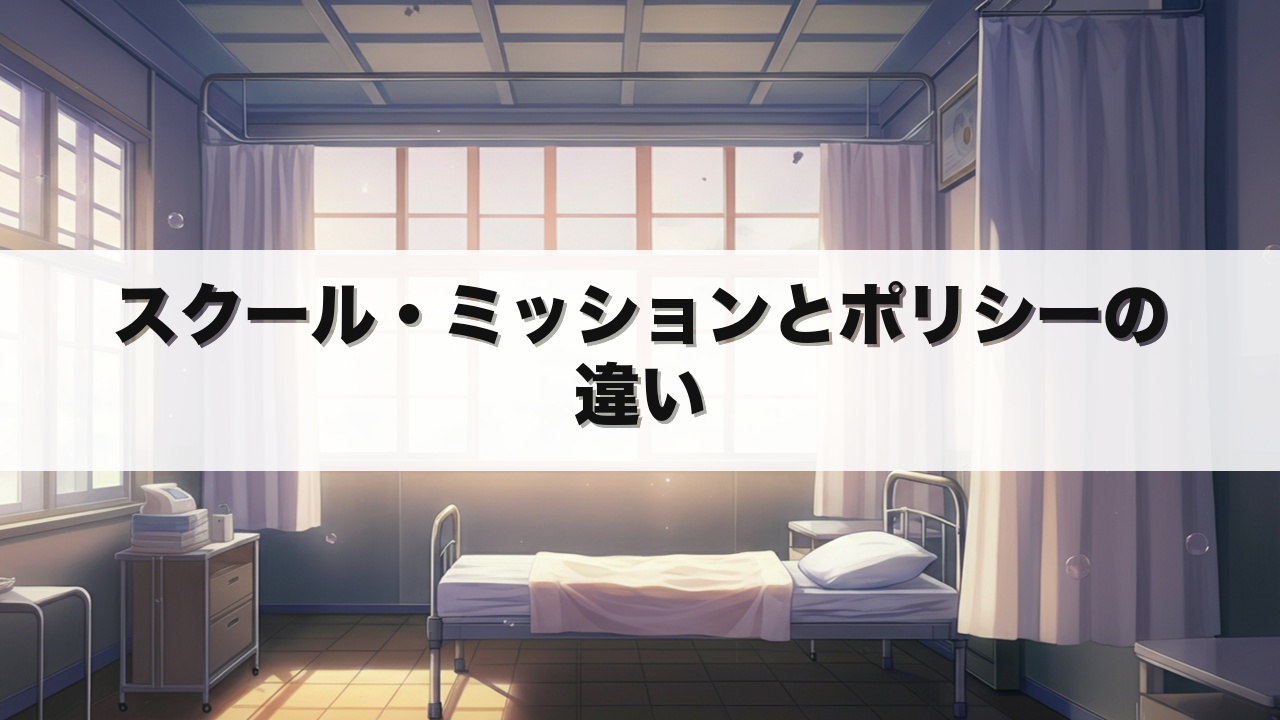 スクール・ミッションが「学校の理想像」なら、スクール・ポリシーは「その理想を実現するための現実的な行動計画」と言えます。