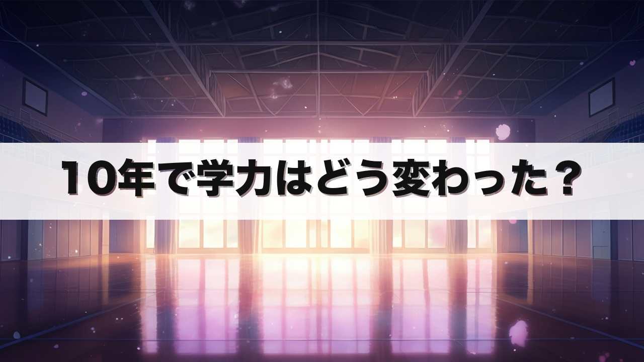 過去10年間のデータを見ると、全体的な学力水準は概ね横ばいから微増傾向を示しています。