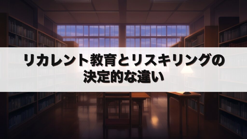 社会人の学び直しが急速に広がる中、「リカレント教育」と「リスキリング」という言葉をよく耳にします。 しかし、この2つの概念の違いを正確に説明できる人は意外と少ないのです。 この記事を読むことで、両者の本質的な違いが理解でき、教育現場での説明... -