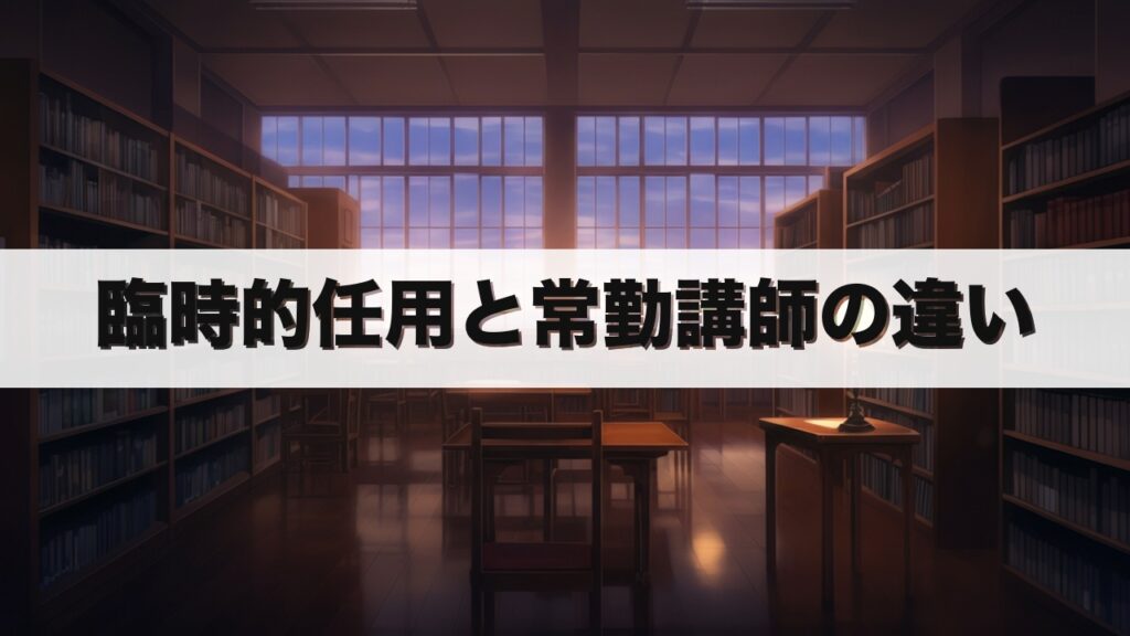 教員採用試験に合格していない段階で学校現場に入る方法は複数あります。 その中でも「臨時的任用教員」と「常勤講師」は名前が似ていますが、法的身分・待遇・任期が大きく異なります。 この記事を読むことで、両者の違いが明確になり、教職教養試験や現...
