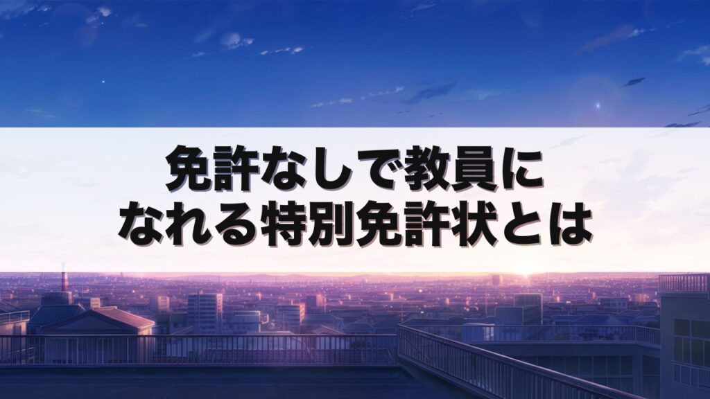 実は、教員免許を持たなくても教員になれる制度があります。 それが「特別免許状」です。 この記事を読むことで、特別免許状の授与条件や普通免許状との違いが理解でき、教員採用試験対策や社会人からの教職転身に役立ちます。 特別免許状とは何か 特別免... -