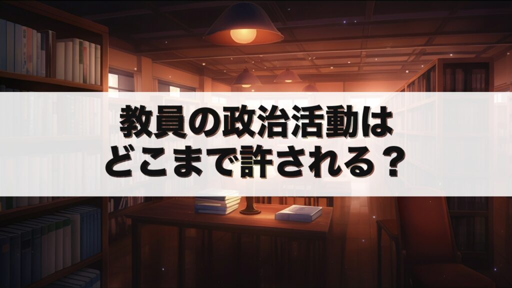 教員は政治活動をしてはいけない、と聞いたことはありませんか。 しかし「絶対禁止」ではなく、「制限範囲」が法律で定められています。 この記事を読むことで、教員の政治的行為の正確な規制内容がわかり、採用試験対策や現場での判断基準に役立ちます。 ... -