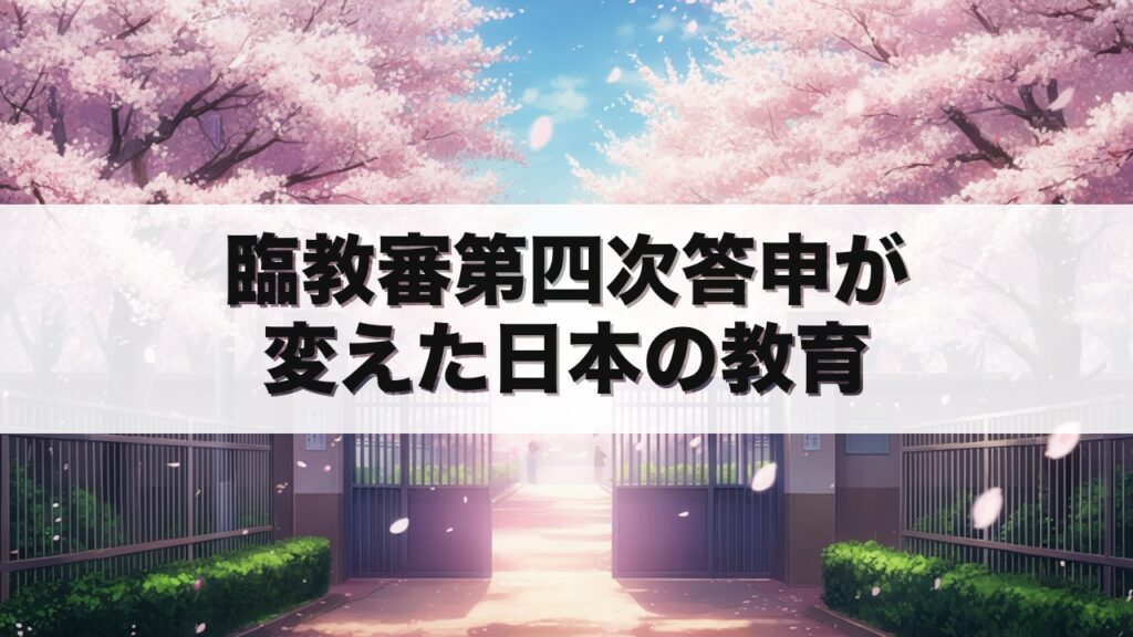 1984年から1987年にかけて中曽根康弘内閣下で進められた臨時教育審議会。 その最終答申である第四次答申は、戦後教育の大転換をもたらしました。 この記事を読むことで、臨教審が何を目指し、現在の教育制度にどう影響しているかが理解でき、教員採用試験... -