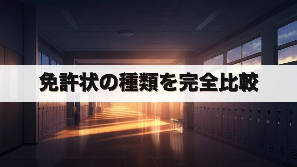 教員採用試験や教育実習の準備で「臨時免許状」という言葉を耳にしたことはありませんか? 普通免許状との違いを理解することは、教職志望者にとって必須知識です。 この記事を読むことで、両者の有効期間・授与権者・授与要件の違いが明確になり、試験対... -